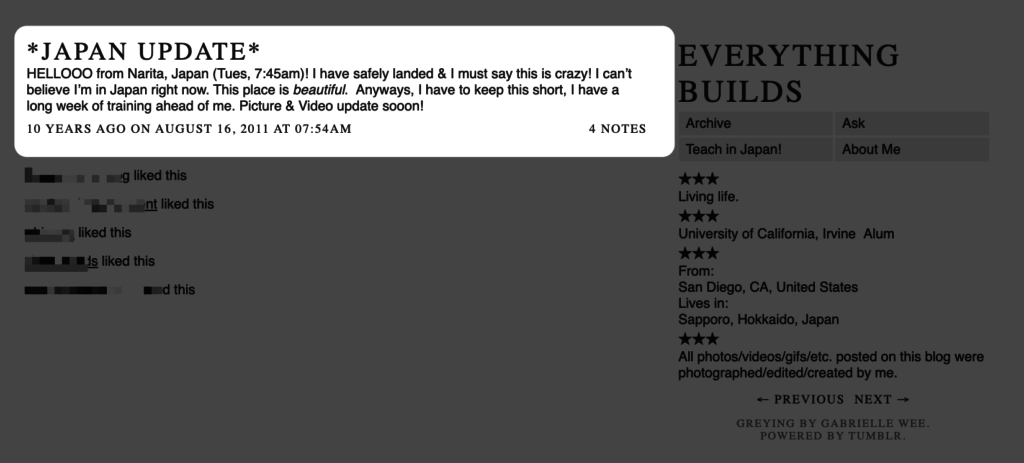 It was harsh times. I was living in the living room of a house with seven other people, and my part-time gig as a barista wasn’t cutting it, so moving to Japan to teach English didn’t seem like such a bad idea after all.